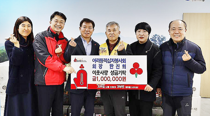 아라동적십자봉사회(회장 한진희)는 지난 12일 지역 내 취약계층을 위해 사용해 달라며 성금 100만원을 제주시 아라동주민센터와 아라천사 1004 곳간에 기탁했다.