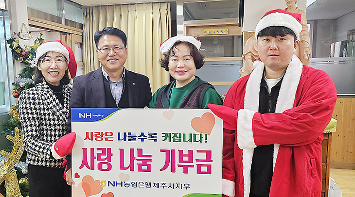 농협은행 제주본부 각 영업점들은 지난 11일부터 연말연시를 맞아 사회복지시설 및 단체에 따뜻한 겨울나기 위한 이웃돕기 성금을 릴레이 기부했다. 각 영업점별로 사회복지시설 1곳 또는 2곳을 선정해 직접 방문, 성금·쌀 등을 전달했다. 릴레이 캠페인은 연말까지 도내 곳곳에서 진행될 예정이며 총 기부금액은 약 3000만원이다.