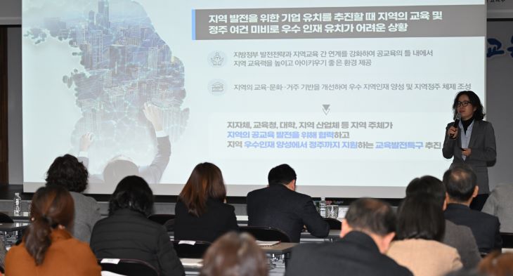 19일 제주도교육청 대강당에서 교육부가 마련한 '찾아가는 교육발전특구 설명회'가 열렸다. 이상국기자