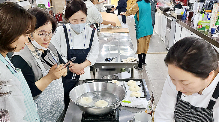 제주평생교육장학진흥원(원장 고승한) 제주다움 디저트쿠킹클래스 교육생들은 지난 18일 서귀포시 대천동 행정복지센터 내 나눔 사업 '고팡'을 방문해 직접 만든 단팥빵과 머핀 등을 전달했다.