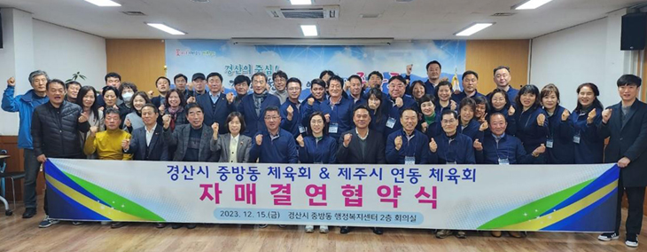 제주시 연동체육회(회장 고택남)는 지난 15~17일 경상북도 경산시 중방동을 방문해 중방동체육회와 자매결연 협약식을 체결하고 체육교류 활동을 시작했다.