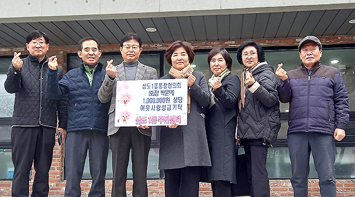 제주시 삼도1동통장협의회(회장 박문택)는 지난 18일삼도1동주민센터(동장 송정심)를 방문해 지역에 거주하는 도움이 필요한 어려운 이웃을 위해 써달라며 후원금 100만원을 기탁했다.