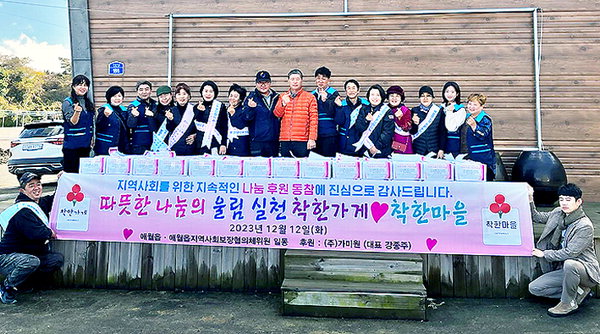 기탁한 김치는 애월읍지역사회보장협의체(민간위원장 이성민)와 우리동네삼춘돌보미의 도움으로 취약계층 101가구와 복지시설 53개소에 전달됐다.