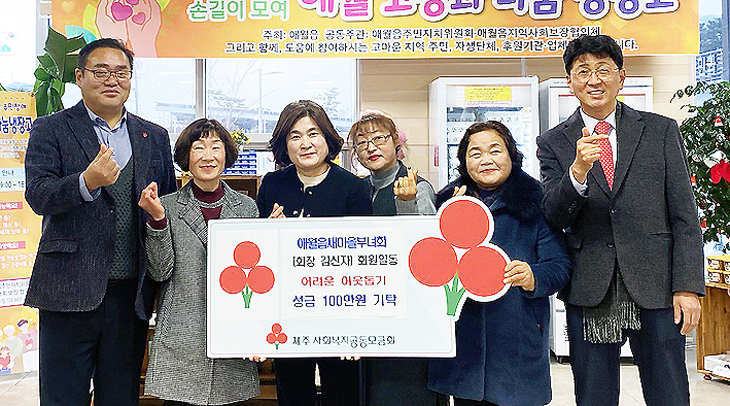 제주시 애월읍새마을부녀회(회장 김신자)는 지난 22일 어려운 이웃 돕기 일환으로 성금 100만원을 기탁했다.