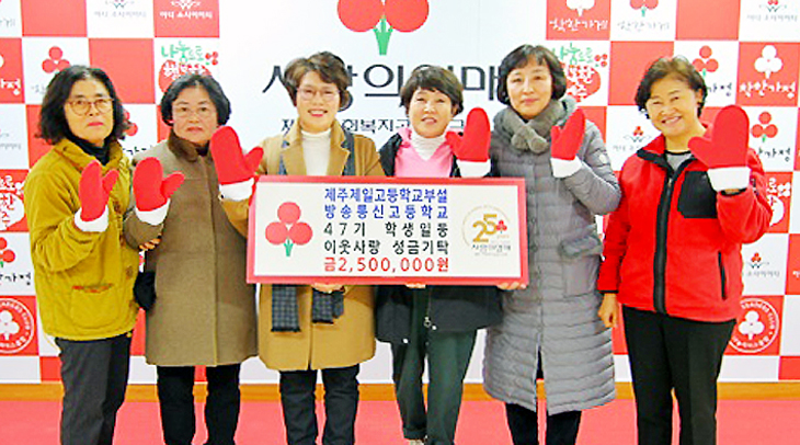 제주제일고등학교 부설 방송통신고등학교 47기 이정희 학생회장과 학생일동은 최근 제주사회복지공동모금회(회장 강지언) 사무실을 방문해 희망2024나눔캠페인 이웃사랑 성금 250만원을 기탁했다.