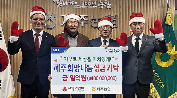 NH농협은행 제주본부(본부장 고우일)도 지난 19일 제주사랑의열매에 희망나눔 성금 1억원을 기탁했으며, 20일에는 도서지역 학교 학생들의 체험교육과 먹거리 지원을 위한 희망기금 1000만원을 전달했다.