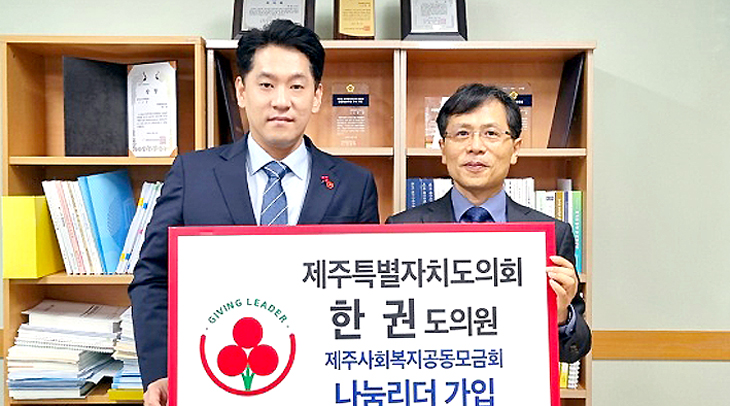 나눔리더 가입식은 지난 1일 한권 의원실에서 진행됐으며, 기탁한 성금은 전액 도내 복지사각지대 발굴과 취약계층 지원에 사용될 예정이다.