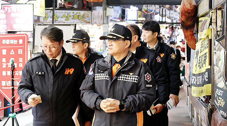 제25대 제주소방서장으로 취임한 양영석 서장이 취임식을 마친 직후인 2일 화재취약 대상인 동문시장과 드림타워를 방문하며 현장 점검에 나섰다.