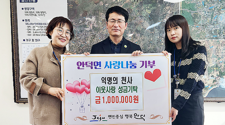 안덕면은 "매년 익명으로 지역의 어려운 이웃을 위해 성금을 기탁해 주시는 기부자님께 진심으로 감사드린다"고 했다.
