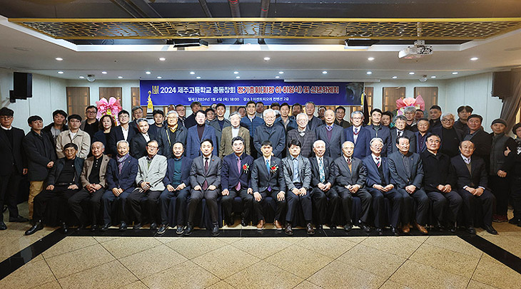 제주고등학교 총동창회 (회장 신영민)는 지난 4일 제주시 아젠토피오레컨벤션에서 총동창회원 300여 명이 참석한 가운데 2024년도 신년하례회 및 정기총회를 개최했다.