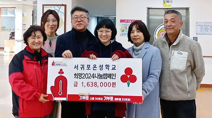 서귀포온성학교 진로직업부는 지난 4일 제주도사회복지공동모금회(사랑의 열매)에 학교 카페 및 장터 수익금 160여 만원을 기부했다.