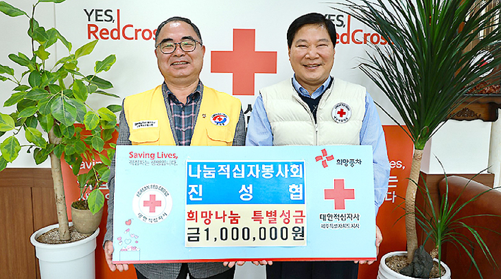 나눔적십자봉사회 진성협 봉사원은 지난 5일 대한적십자사제주특별자치도지사(회장 정태근)를 방문해 후원금 100만원을 전달했다.