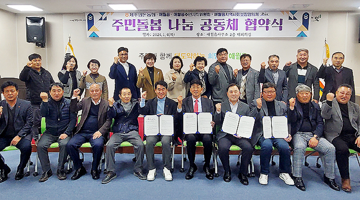 제주양돈농협(조합장 고권진)은 지난 4일 제주시 애월읍사무소 2층 대회의실에서 애월읍, 애월읍주민자치위원회, 애월읍지역사회보장협의체와 애월읍 지역 내 취약계층을 후원하고 맞춤 서비스를 지원하는 주민 돌봄 나눔 공동체 협약식을 가졌다.