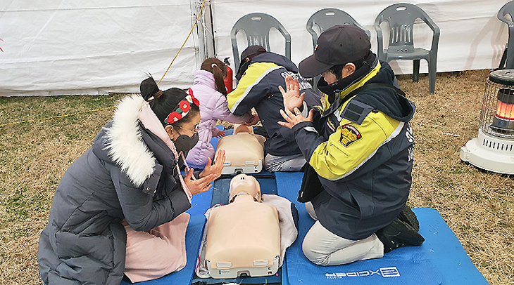 제주동부소방서 성산여성의용소방대(대장 홍재영)는 지난달 31일 열린 제31회 성산일출축제에서 관광객과 지역주민을 대상으로 심폐소생술과 자동제세동기(AED) 사용법 등을 알리는 생활안전교육을 실시했다.