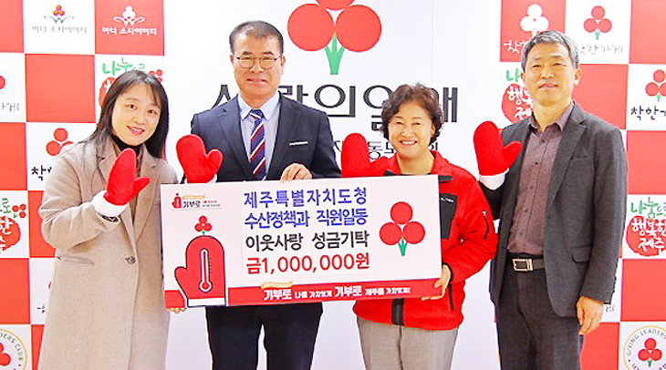 제주특별자치도 수산정책과(과장 오상필)는 최근 제주사회복지공동모금회(회장 강지언) 사무실을 방문해 희망2024나눔캠페인 이웃사랑 성금 100만원을 기탁했다.