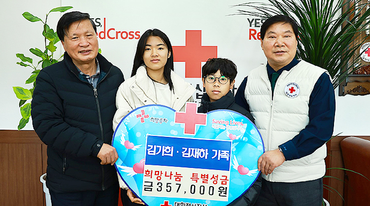 김가희 학생은 "도움이 필요한 지역 이웃들에게 마음을 전하고 싶어 동생과 함께 용돈을 열심히 모았다"며 "적십자사에서 어려운 이웃들을 찾아 따뜻한 겨울을 보내는 데 도움이 됐으면 좋겠다"고 말했다.