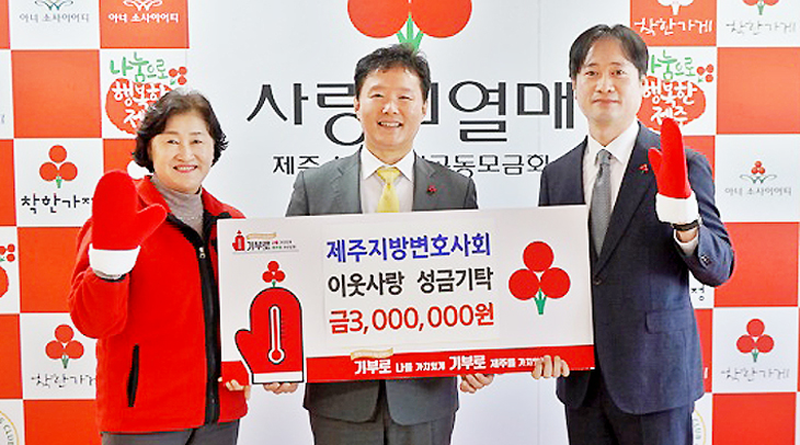 제주지방변호사회(회장 허상수)는 최근 제주사회복지공동모금회(회장 강지언) 사무실을 방문해 희망2024나눔캠페인 이웃사랑 성금 300만원을 기탁했다.