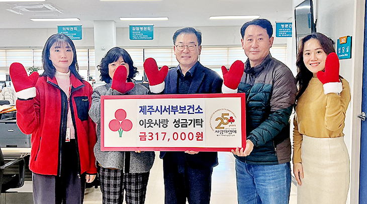 제주시 서부보건소(소장 유창수)는 최근 한림읍 소재의 서부보건소 사무실에서 희망2024나눔캠페인 이웃사랑 성금 31만7000원을 제주사회복지공동모금회(회장 강지언)에 기탁했다.