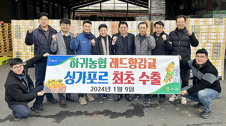 제주시 하귀농협(조합장 강병진)은 지난 9일 하귀농협 경제사업장에서 공선출하회원·임직원 등 30여 명이 참석한 가운데 만감류 수출 선적식을 가졌다.