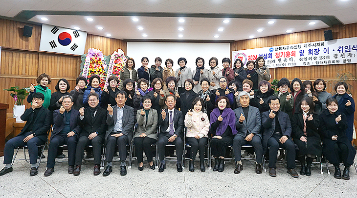 한국자유총연맹제주시지회 여성회(회장 김선자)는 10일 탐라자유회관 강당에서 연맹임원과 회원 등 100여명이 참여한 가운데 '2024 여성회 정기총회 및 회장 이·취임식'을 개최했다.