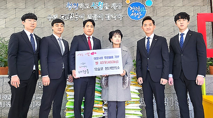 서귀포시 모슬포청년회의소(회장 김군태)는 지난 8일 대정읍사무소를 방문해 지역 내 어려운 이웃들을 위한 쌀 400㎏을 기탁했다.