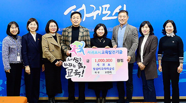 서귀포 칠십리로타리클럽(회장 고인자)은 지난 9일 서귀포시청 접견실에서 (재)서귀포시교육발전기금(이사장 현봉식)에 서귀포시교육발전기금 100만원을 기탁했다. 서귀포 칠십리로타리클럽은 2014년부터 서귀포시교육발전기금 모금에 참여해 매년 기부금을 기탁하고 있다. 현재까지 총 1000만원을 기탁했다.