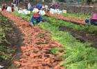 15일 오전 제주월동무연합회 회원들이 트랙터로 서귀포시 성산읍 난산리에 있는 강동만(71) 씨의 밭에서 과잉생산 등으로 가격이 폭락한 월동무를 갈아엎고 있다. 연합뉴스