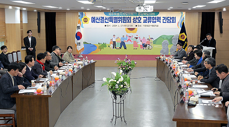 제주특별자치도의회 예산결산특별위원회(위원장 양용만)는 17일 제주도의회 대회의실에서 경상북도의회 예산결산특별위원회(위원장 황재철)와 상호 교류협력을 위한 간담회를 개최했다.