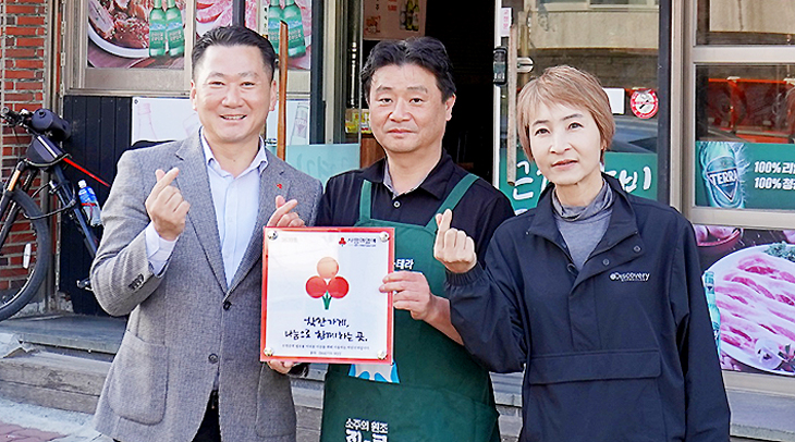 제주시 노형동 소재 식당 근경갈비(대표 김태완)는 지난 18일 매장 앞에서 노형동, 노형동지역사회보장협의체, 제주사회복지공동회가 함께하는 착한가게 캠페인에 동참하고 현판 전달식을 가졌다.