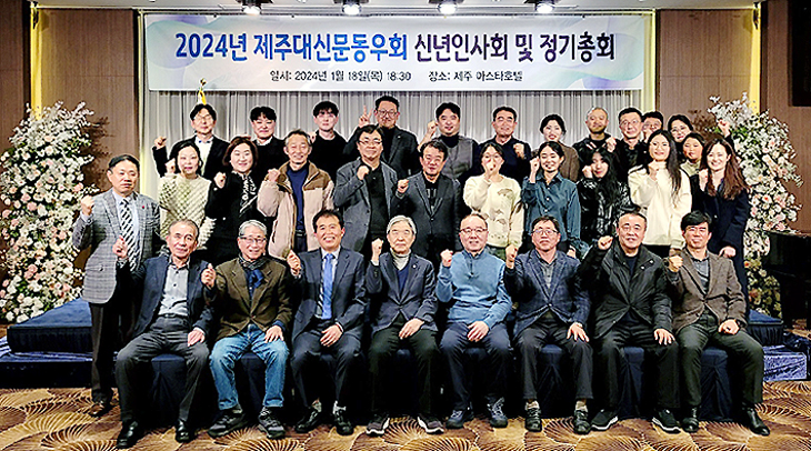 제주대신문동우회(회장 강영진)는 지난 18일 아스타호텔에서 2024년 신년인사회 및 정기총회를 개최했다. 이날 총회는 2023년 감사·결산 보고에 이어 동우회 활성화와 회원 단합을 위한 올해 사업을 심의·의결했다.