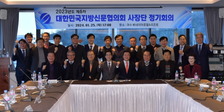 대한민국지방신문협의회가 25일 전남 여수시 베네치아호텔&리조트에서 개최한 '2023년도 제6차 사장단 정기회의'에서 참가자들이 기념 사진을 찍고 있다. 대신협 공동취재단