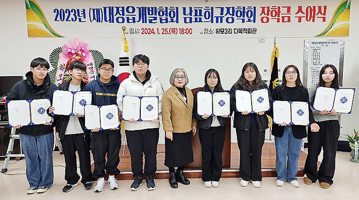 서귀포시 (재)대정읍개발협회는 지난 25일 대정읍 하모3리 다목적회관에서 남표·희규장학회(이사장 고희선) 장학금 수여식을 실시하고 총 8명의 학생들에게 200만원씩 총 1600만원을 전달했다.