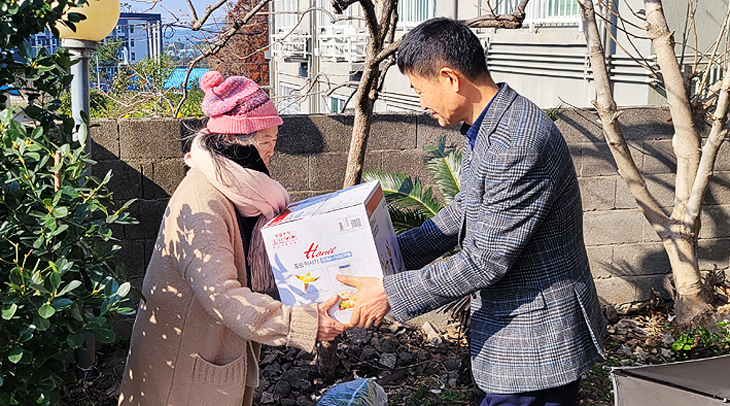 서귀포시 중문동주민센터(동장 김재희)는 지난 29일 갑진년 설을 앞두고 직원들이 십시일반 모은 성금(40만원 상당)으로 마련한 물품 등을 홀로 사는 노인 취약가구 10가구에 전달하며 안부 확인 등에 나섰다.
