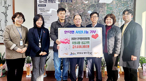 서귀포시 안덕면이장협의회(회장 강영봉)는 지난 29일 서귀포시 안덕면(면장 오승언)을 방문해 저소득 독거노인, 장애인 등을 위해 사용해 달라며 성금 600만원을 기탁했다.