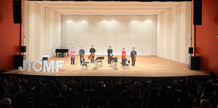 지난 3일 제주 문예회관 대극장에서 열린 제7회 제주국제실내악페스티벌(JICMF) 개막 공연의 첫 무대를 연 심희정 교수와 클래시칸 앙상블(김덕우, 최고은, 이신규, 장우리). 제주국제실내악페스티벌조직위원회 제공