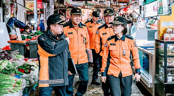 고민자 제주소방안전본부장이 동문시장 현장점검에 나서며 부임 후 첫 공식업무를 시작했다.
