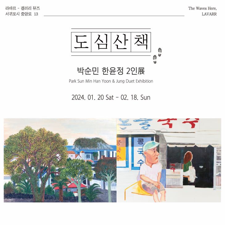 두 작가가 그려낸 제주의 풍경 이야기를 마주할 수 있는 전시가 진행 중이다. 서귀포시 중앙로에 위치한 복합문화공간 라바르-갤러리 뮤즈(2층 전시공간)가 새해를 맞아 기획한 제주의 원도심을 담은 '도심산책'전이다.