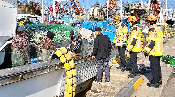서부소방서 한림119센터(센터장 정경만)는 12일 제주시 한림읍 한림항에서 어선끼리 연결된 밧줄 분리 및 이동조치 방법에 관한 인식훈련을 실시하고 어선근로자에 대한 소방안전교육을 실시했다.