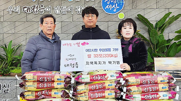 서귀포시 대정읍 무릉2리 박기범씨는 지난 7일 설을 앞두고 대정읍사무소를 방문해 어려운 이웃을 돕기 위한 사랑의 쌀 330㎏을 기탁했다. 이 쌀은 대정읍 관내 저소득 가정 등 33가구에 전달된다.