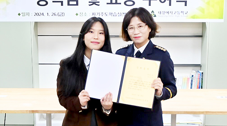 서귀포시 대정여성의용소방대(대장 김춘희)는 최근 대정여자고등학교에 장학금(50만원)을 전달하고 격려했다. 대정여성의용소방대는 지난 15년간 정기적으로 학교를 방문해 장학금을 전달해 왔다.