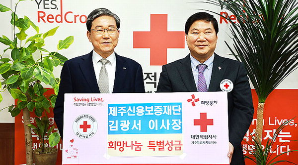 김광서 제주신용보증재단 이사장은 지난 14일 대한적십자사제주특별자치도지사(회장 정태근)에 2024년 희망나눔 특별성금 168만5000원을 전달했다.