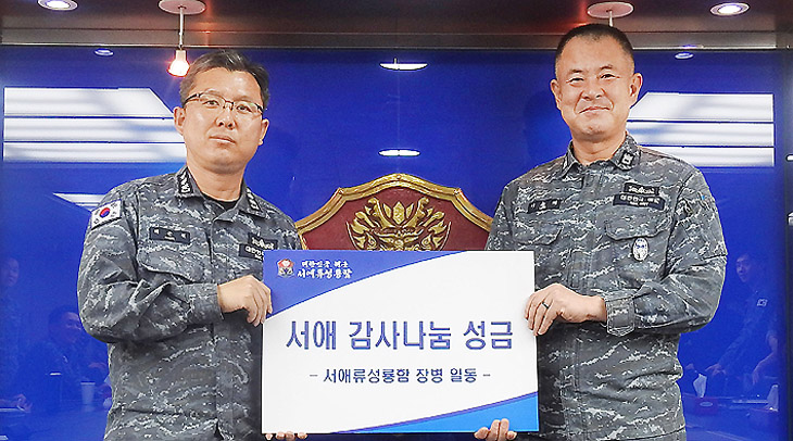 서애류성룡함(함장 대령 백준철)은 22일 서귀포시장애인종합복지관(관장 윤보철)에 성금 200만원을 전달했다.