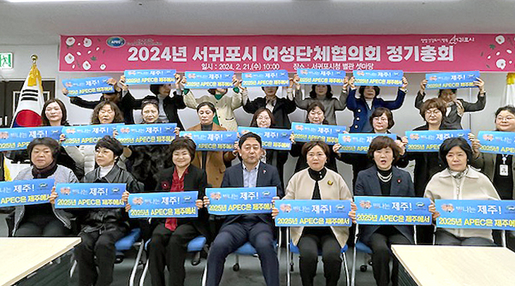서귀포시여성단체협의회(회장 김옥화)는 지난 21일 서귀포시청 별관 셋마당에서 대의원 등 20여 명이 참석해 정기총회를 열고 2024년도 사업 계획과 예산 확정, 2024년도 신임 회장과 감사를 선출했다.