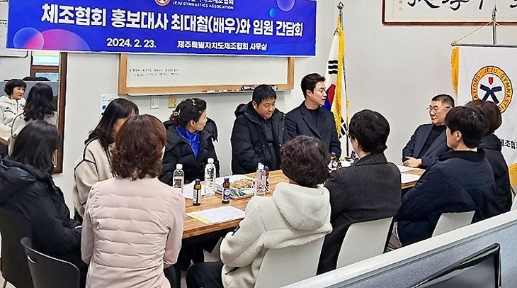 제주특별자치도 체조협회(회장 강창용)는 지난 23일 도체육회관에서 임원과 협회 홍보대사인 최대철(배우 겸 탤런트) 씨가 참석한 가운데 간담회를 가졌다.