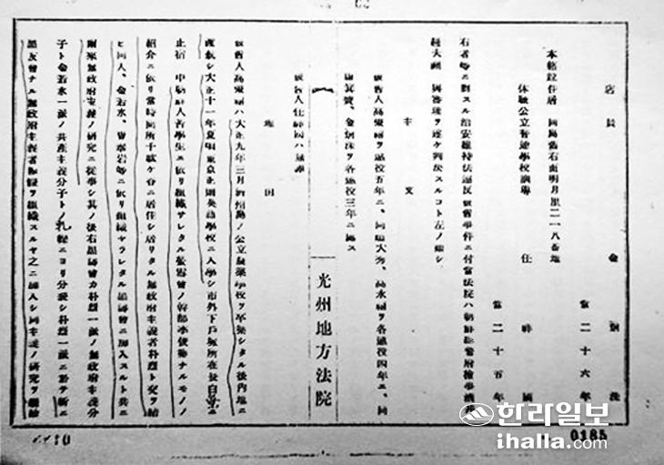 우리계 사건 관련 광주지방법원 판결문(1930년 12월 8일)