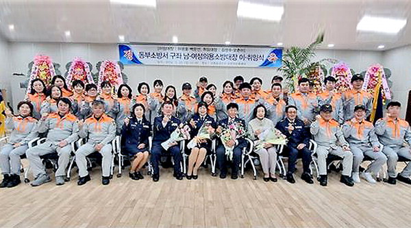구좌119센터(센터장 고인수)와 구좌의용소방대(남성대장 김성수, 여성대장 오춘미)는 지난 25일 구좌읍사무소 다목적문화센터에서 강동우 도의원, 오상석 구좌읍장, 소방공무원 및 의용소방대원 등 100여 명이 참석한 가운데 구좌의용소방대장 이·취임식을 가졌다.