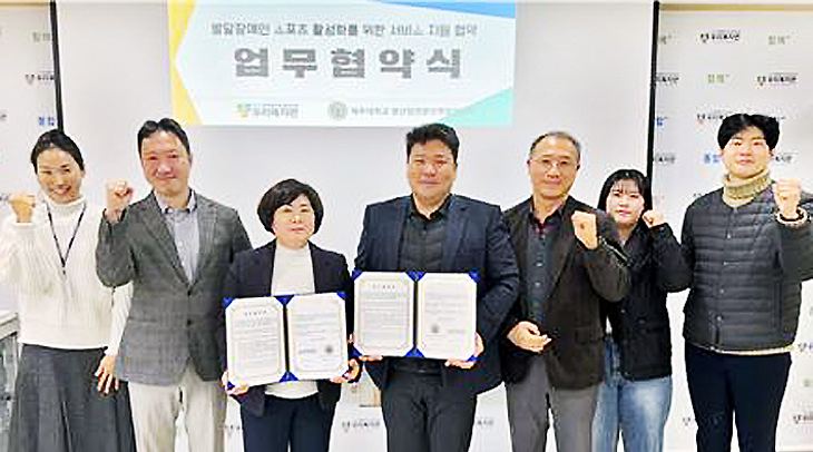 (재)제주특별자치도사회서비스원 우리복지관(관장 김정옥)은 발달장애인의 재활 스포츠 활성화를 위해 제주대학교 말산업전문인력양성센터(센터장 도경탁)와 지난달 28일 업무협약을 체결했다.