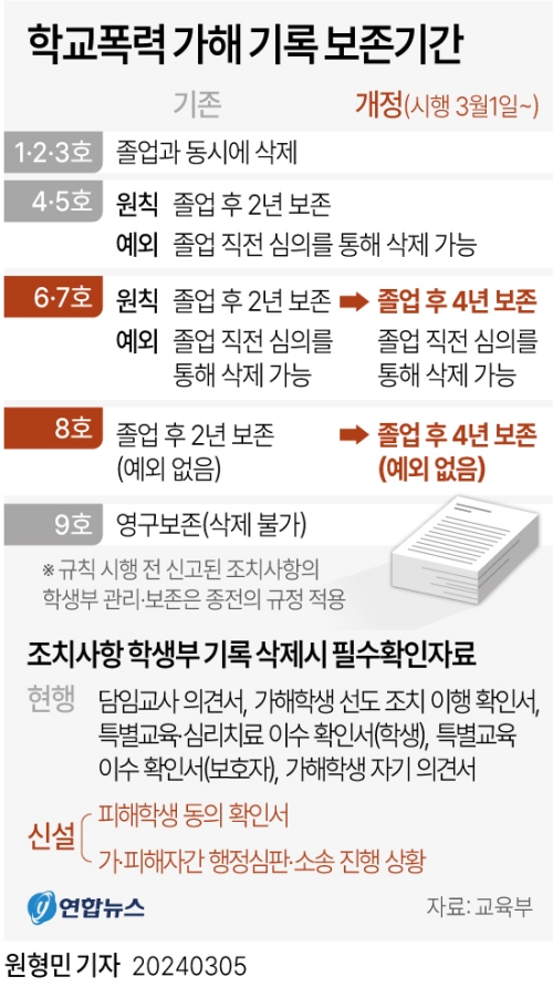 학교폭력 가해 기록 보존기간. 연합뉴스