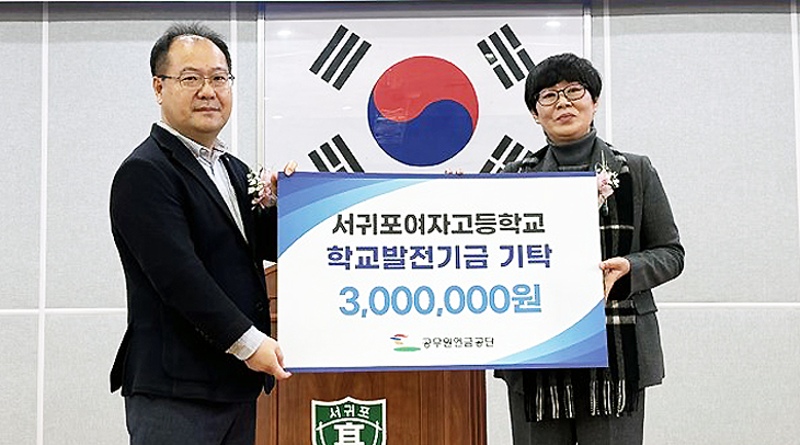 공무원연금공단(이사장 김동극)은 지난 4일 지역사회 교육환경 개선과 미래세대의 성장 지원을 위해 서귀포여자고등학교와 서귀포대신중학교에 장학금 600만원을 기탁했다.