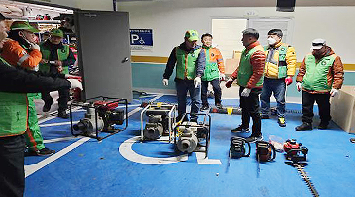 이날 캠페인에서는 동절기가 대설에 대응하기 위해 사용한 제설장비 정비와 호우를 대비하기 위해 수방 자재를 점검하는 시간을 가졌다.